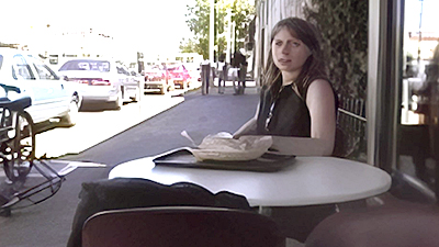 "Eat IT!" Marion Rodney's having pizza and not eating his crust. Cute Marion walks over to his table and lectures him about eating all his food. "You should always eat what is put in front of you," she says. Rodney has no problem doing that after she puts her ... in his face. |