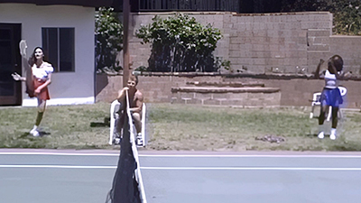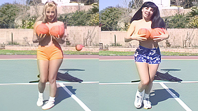 Julianna and Monique are cheerleaders at a doubles tennis match. While Monique is taking care of the line judge, Julianna takes a break with nature calling. Thirsty Guy asks if he can have some of the Ginger Ale in her cups. "Doesn't taste like Ginger Ale," he says, "and it's warm!" "Must be from the sun," she says. When the match is over, the girls take all 5 guys into the rec room for a different kind of sport!