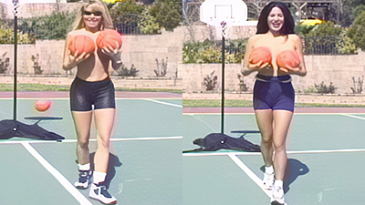 "Nude Basketball Warm-Ups" Stacy, Alissa, Ginger, Alexis, Carolyn, Karissa, Keki & Crystal, with Moderators Tasha & Molly It's the Blondes versus the Brunettes! They may not be ready for the WNBA, but they're nude, so who cares! |