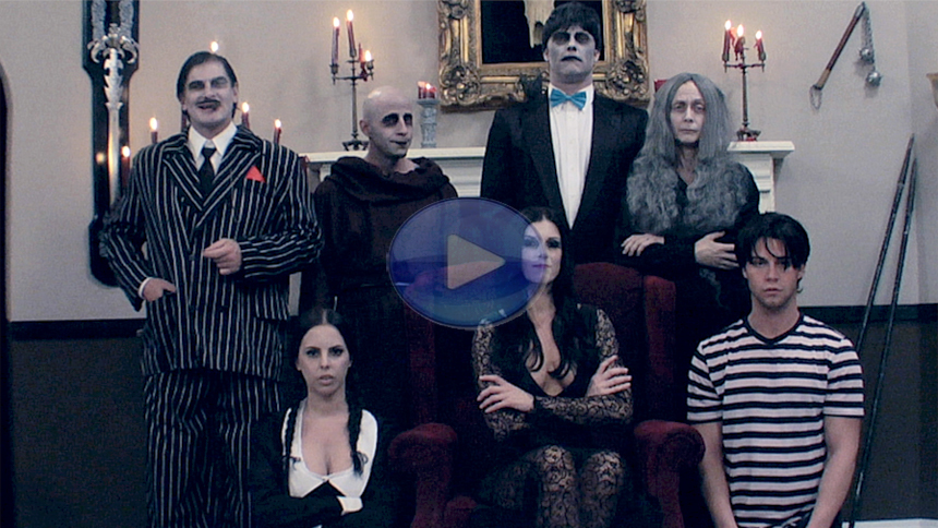 Porn Parody of the infamous and hilarious Addams Family. Wednesday and Pugsley have both turned 18, so their parents Morticia and Gomez feels it's time they had "The Talk" about sex with them. Gomez gets Pugsley a hooker, and Morticia shows Wednesday how "THING" can help with female masturbation.